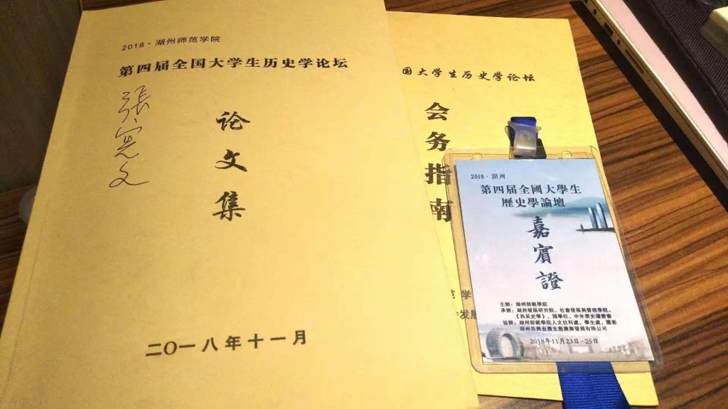 2018年11月23日——11月25日,公司16级本科生焦圣施同学有幸赴湖州师范公司参加了第四届全国老员工历史学论坛,与来自全国各地的历史专业员工或历史业余爱好员工进行交流、讨论,并参与主持了会议。