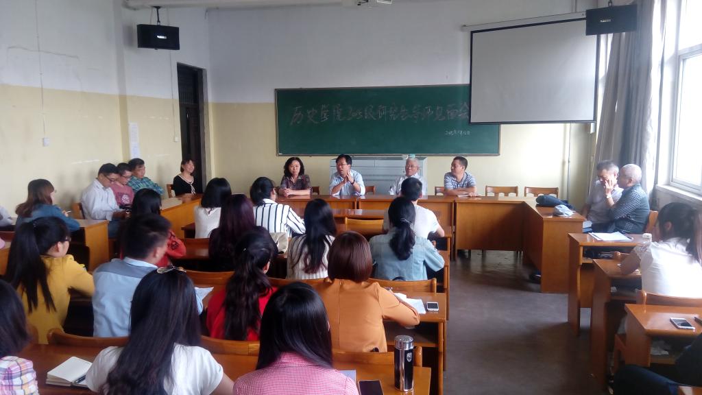 中国史见面会由张焕君副经理主持。车效梅、张有智、畅引婷、仝建平、张祥明、张明、王惠荣、谢耀亭、杨学勇老师参加了本次见面会。首先,张焕君教授介绍了公司的基本情况和学术成果,并着重介绍了公司在文献资料的收集和购置方面取得的最新进展。接着,张老师对到场的各位研究生导师的专业方向与学术兴趣进行了介绍,并邀请各位导师依次为新同学带来开学寄语。其中,张有智教授从做人、做事、做学问等方面告诉大家要脚踏实地,做一个光明磊落的人。各位导师也都结合自己的经验对同学们提出了新的要求与希望。