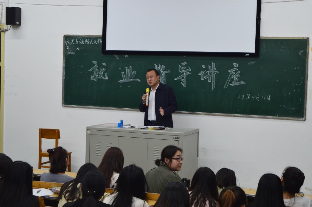 4月11日,db旗舰在05202教室举办了“2018年就业指导讲座”。公司党委副书记段旭杰为公司大四毕业生进行就业指导培训。