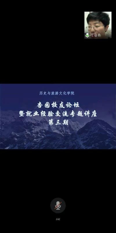 韩敏学姐是师大18届的优秀毕业生。大三时,她也面临着工作还是考研的艰难抉择,最终她选择了毕业直接工作。事实证明,学姐对自己的未来有着明确的规划,她毕业后先在教育机构任职,为自己积累工作经验。随后她在河北省石家庄市藁城区第一中学就职,担任了1909班班主任,历史老师。学姐为我们分享了她在工作中的经历与经验,我们也从中感受到了学姐的坚韧与勇敢。此次分享会议在阎海燕老师的总结讲话中落下帷幕。