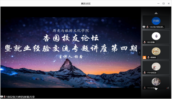 会议伊始,阎海燕老师对杨鑫学长的工作经历做简要介绍,随后杨鑫学长从三个方面,结合自身经历为我们提出了良好的就业建议。首先要明确先就业后择业的总纲领,不要眼高手低,应沉淀自己;其次坚持参加多种就业招聘考试,留意公开招聘信息,在考试中积累经验,弥补不足,最终脱颖而出,成就自己;最后要结合自身专业,制定切合实际的目标与计划,对就业形势等进行合理分析。