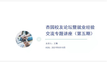 为促进广大毕业生顺利就业,6月10日晚七点三十分,db旗舰成功举办第五期杏园员工论坛暨就业经验交流专题讲座,本次讲座由院团委书记阎海燕老师主持,公司优秀毕业生1202班王博、1502班陈建红担任主讲。
