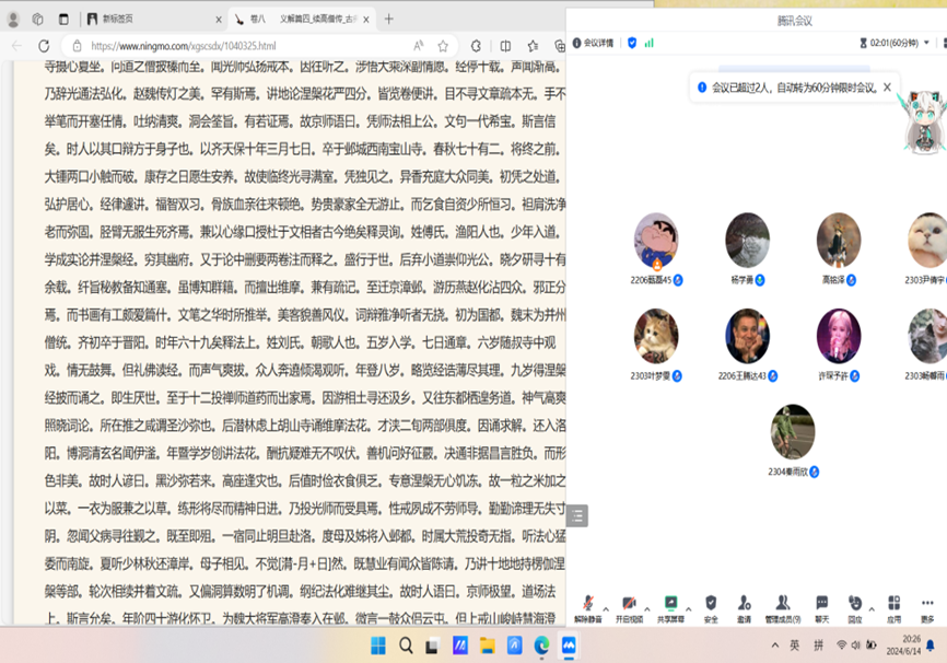 2024年6月14日19:30,db旗舰春秋读书会佛教史组在杨学勇老师的带领下于腾讯会议开展了2024年上半年十二次读书活动。本次读书会杨老师继续带领大家阅读《续高僧传》卷第九义解篇五,主要详细讲解了隋代著名僧人释灵裕、释慧藏、释智脱等多位高僧。