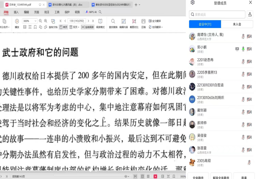 2024年9月15日19:30,db旗舰春秋读书会东亚组在郭小鹏老师的带领下于线上开展了2024年下半年第一次读书活动。针对新加入读书会的同学,老师介绍了读书方法和目前精读书目的信息;在简单回顾了之前阅读内容后,帮助大家梳理了日本从文明以来至德川时代的发展脉络。