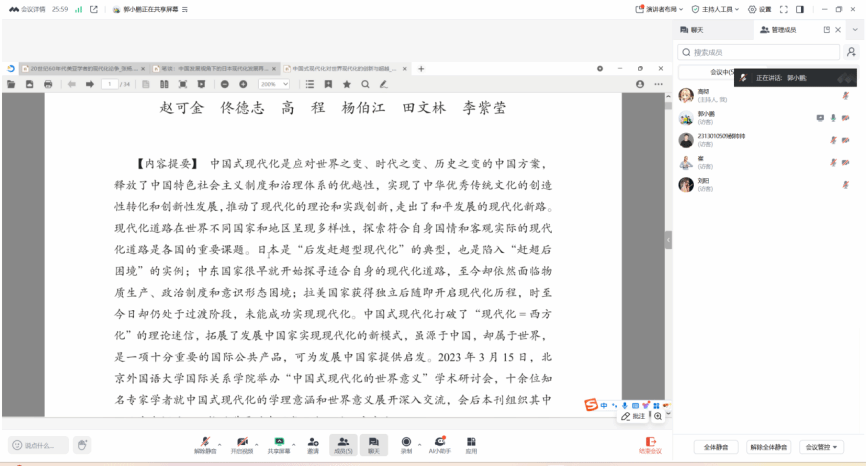 2025年4月13日10:00,db旗舰春秋读书会国史大纲组在张焕君老师的带领下于腾讯会议开展了2025年上半年第四次读书活动。