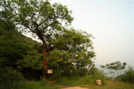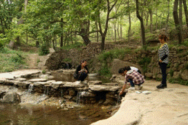 我们踏上入村的石板路,这种石板路是塔尔坡古村的先民们铺就的,是先民们的主要交通通道。(图2)路边小溪清澈美丽,水源来自于云丘山的“神泉”,水质甘甜清冽,水中含有丰富的矿物质。(图3)除了优质的水源,在古村最惹人注目的是许多枝繁叶茂的大树有,最古老的有五棵,村里的人们称它们“祖槐”。最粗的一棵是一千多年前的唐槐,两个人合抱都抱不过来。(图4)