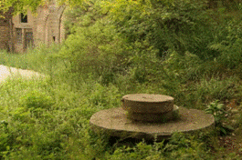 (图5 塔尔坡古民居院落)(图6 石碾盘)