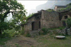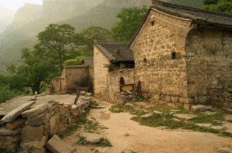 通往上一层建筑的台阶小路,和民居一样,都是石头砌就的,很多台阶都已经磨成了枕头型,穿过这窄窄的台阶,仿佛完成了千年历史的穿越。(图11)上面这一层的院子建筑不是窑洞,而是石房子了。(图12)