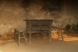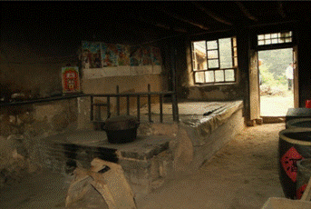 一家大门上方的牌匾“慎德”,说明在这里居住的先民们不是只懂耕种,他们还具有悠远的文化积淀。(图13)古民居内的风格,火炕占据了大部分面积 ,里面的是灶台,生火做饭的同时加热了屋里的火炕。(图14)古民居内的家俱,古色古香。(图15)