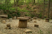 从塔尔坡古村出来,在林间看到用石磨盘和石碾堆成的小桌,别有一番情趣。