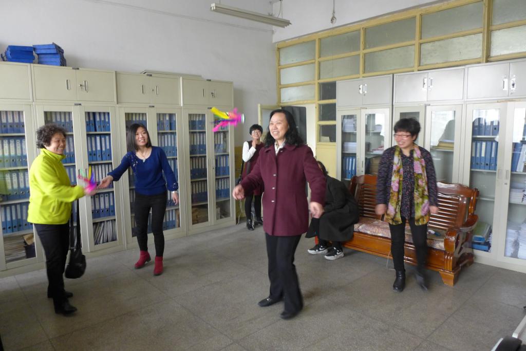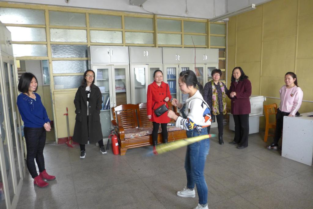 讲座结束之后,又举行了女教职工与部分女员工代表之间的联谊健身趣味比赛。踢毽子、跳绳、呼啦圈、乒乓球等各项比赛活动相继在师生之间展开,既锻炼了身体,又增进了师生情谊。王霏老师获得青年组跳绳第一名,杨秋梅老师获得老年组乒乓球第一名,侯洪梅老师获得中年组踢毽子第一名,畅引婷老师获得老年组踢毽子第一名,李变变同学获得了员工组呼啦圈第一名。