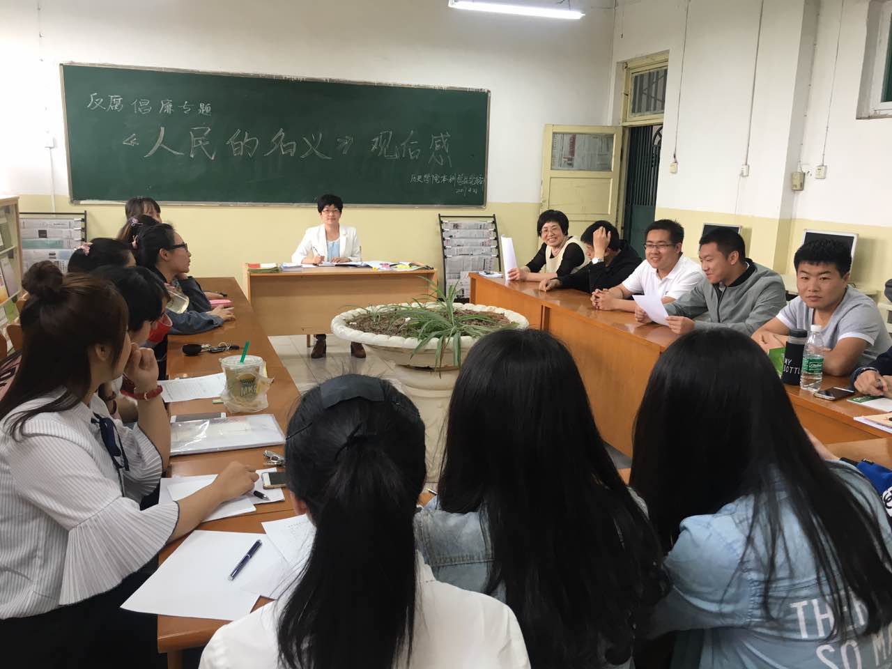 首先,党委书记双春梅与大四毕业生进行了谈话,鼓励党员干部援藏,对我国西部开发做出贡献,发挥好党员模范带头作用。其次,团委副书记阎海燕对近期来党员在志愿服务“红立方”活动中的积极表现给予了肯定,也对其中存在的问题予以指明,使各党员能够更好的为同学服务,使老师放心。最后,由于近期《人民的名义》热播,作为反腐倡廉电视剧,在党内进行此类教育非常有必要。它不仅仅是反腐,更是中国目前政治生态的真实写照。所以,就此话题,党员同志展开了积极的讨论,大家踊跃发言,将自己对该剧的认识与看法做出了详细的解释。董斌同志指出:现实生活中有许多懒政现象,并与自己的实际相联系,指明了反腐倡廉的重要性。“以史为镜,可以知兴衰;以人为镜,可以知得失。”《人民的名义》以现身说法的形式,给我们实实在在的警钟,从清廉到贪污,走错一步,需要用自己的自由与家庭来弥补,权力成为了埋葬自己的坟墓。