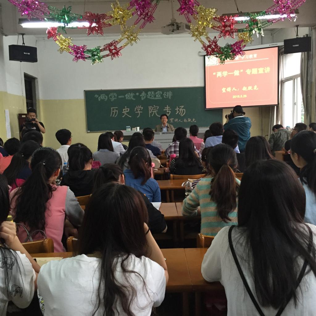 随后,赵教授阐明了开展“两学一做”的总体要求,即基础在学,关键在做。在学习教育中要做到“五个坚持”,实现四个“进一步”,进而着力解决一些党员理想信念模糊动摇的问题;着力解决一些党员党的意识淡化的问题;着力解决一些党员宗旨观念淡薄的问题;着力解决一些党员精神不振的问题;着力解决一些党员道德行为不端的五大问题。