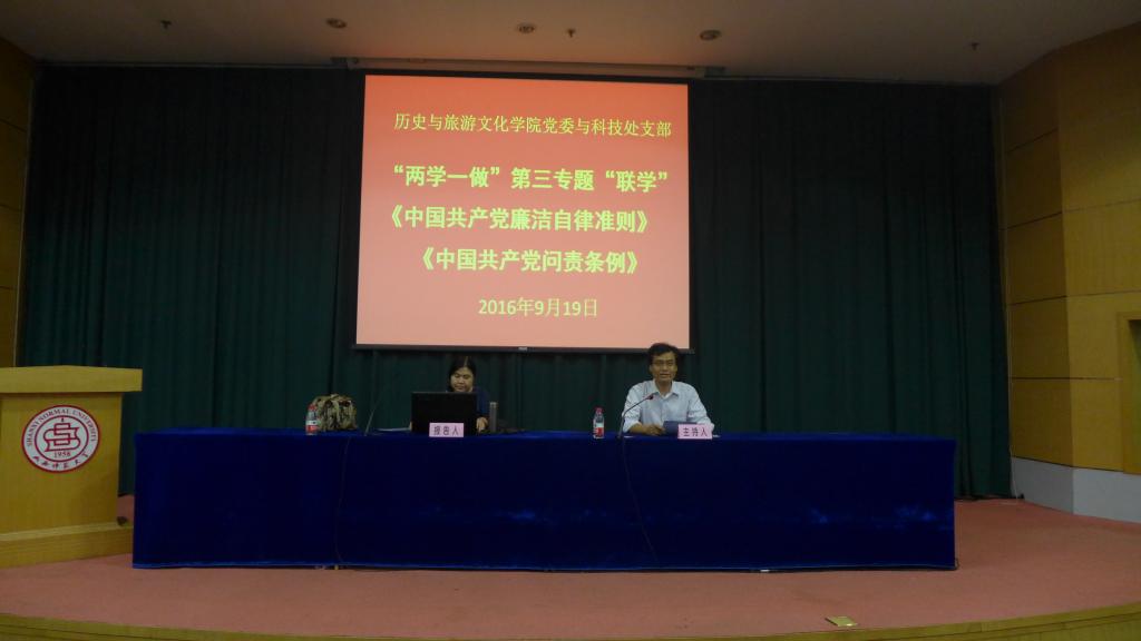 2016年9月19下午4:30,公司党委与科技处党支部邀请公司马克思主义公司副经理樊婧副教授作了“两学一做”第三专题“讲道德,有品行”的专题讲座,详尽解读了《中国共产党廉洁自律准则》(简称《准则》)和《中国共产党问责条例》(简称《问责条例》),讲座由公司党委书记李万中主持。