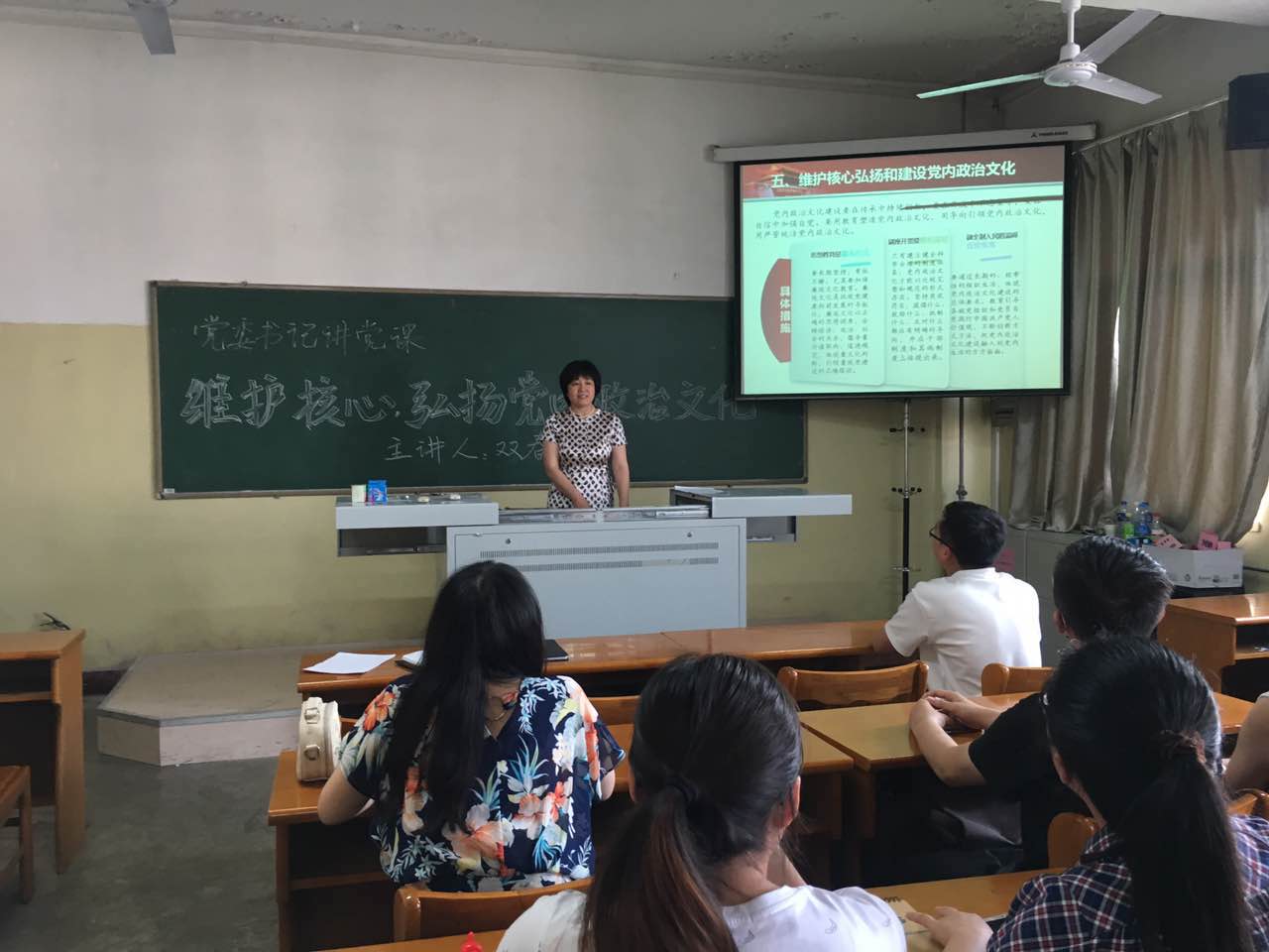 公司党委书记双春梅正在为全院教工党员授课