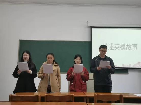 代老师首先强调此次活动旨在员工党员通过英模故事,将英模身上的优良品质内化于心,外化于行,增强员工的民族自尊心、自信心、自豪感。魏润玲、张丹凤、宋宇倩、梁书华等十三名员工党员讲述了英模故事,用他们朴素的语言讲述了许多优秀共产党员一心为民、大公无私、可歌可泣的动人事迹,包括耐得清贫,守得心灵的高贵,将毕生积蓄捐给家乡的马旭老人;以血肉挡住危险拯救战友的排雷军人杜富国;将一生奉献给祖国核事业的程开甲老人等等。任雅婷、原连泽、闫宝文同学对优秀共产党员事迹进行了精彩点评,对照自己找差距,勉励员工党员们要认真学习优秀共产党员高贵品质,立足当下,脚踏实地。