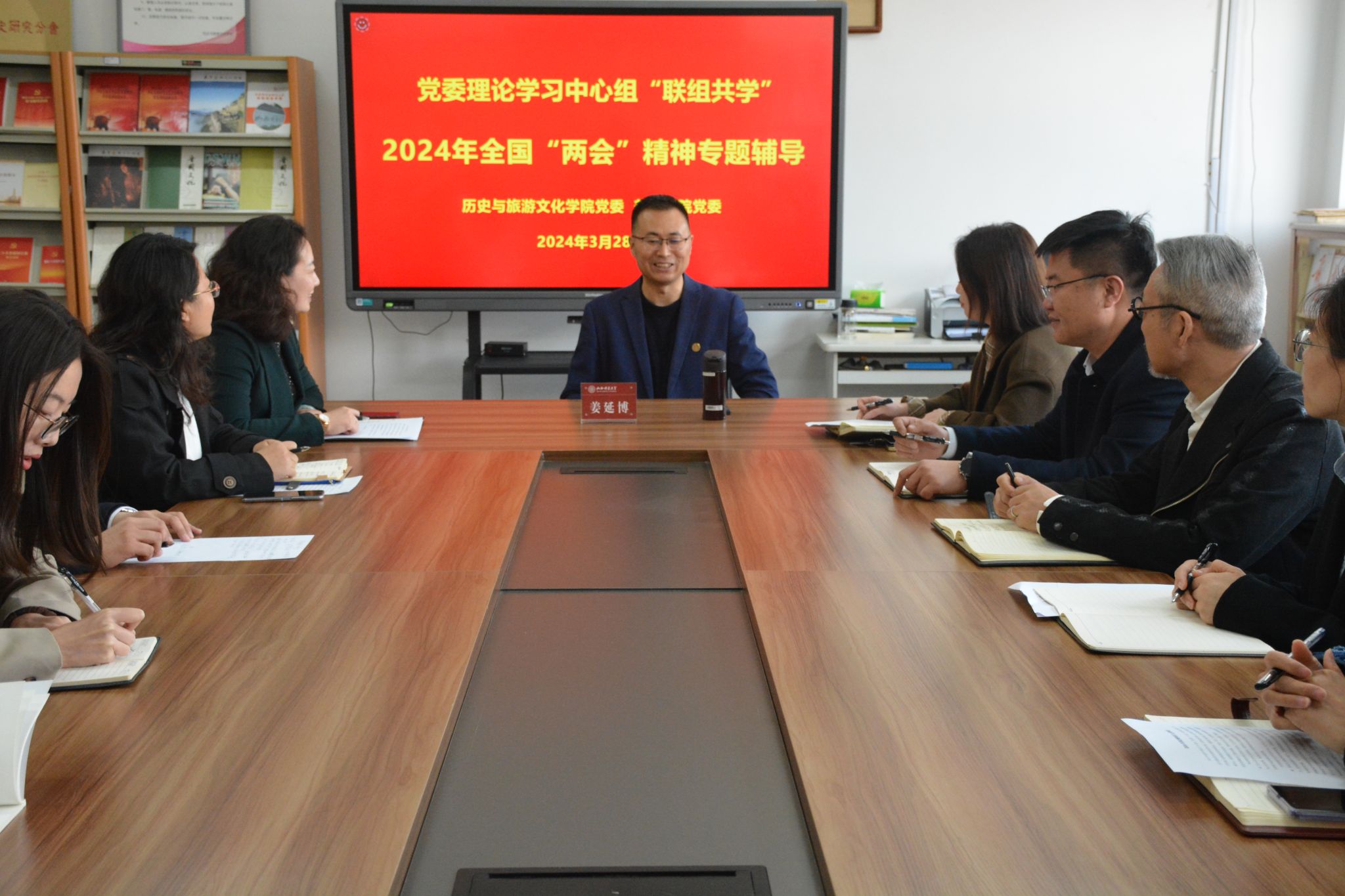 为深入学习贯彻2024年全国两会精神,落实立德树人根本任务,立足新方向,奋力开新局,3月28日上午,公司党委与美术公司党委理论学习中心组在一号教学楼二层现刊阅览室开展了联组共学学习研讨会,并邀请马克思主义公司姜延博副教授为中心组成员进行2024年全国“两会精神”专题辅导,会议由公司党委书记王玮主持。
