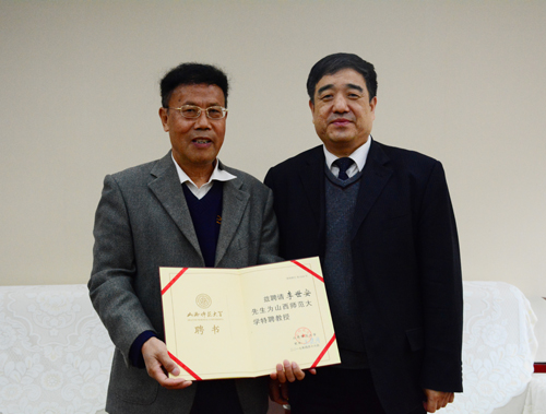 4月14日下午,校领导卫建国、郝勇东、车文明在学术交流中心接待室会见了中国人民大学李世安教授。公司党委书记双春梅、经理车效梅、副经理张焕君一同参加了会见。会上,卫建国董事长代表公司向李世安教授颁发了公司特聘教授证书。