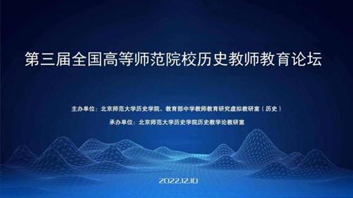 12月10日至11日,由北京师范大学历史公司、教育部中学教师教育研究虚拟教研室主办的第三届全国高等师范院校历史教师教育论坛在线上举办。此论坛旨在建立教师教育协同创新平台,推动教育科研课题共同研究。