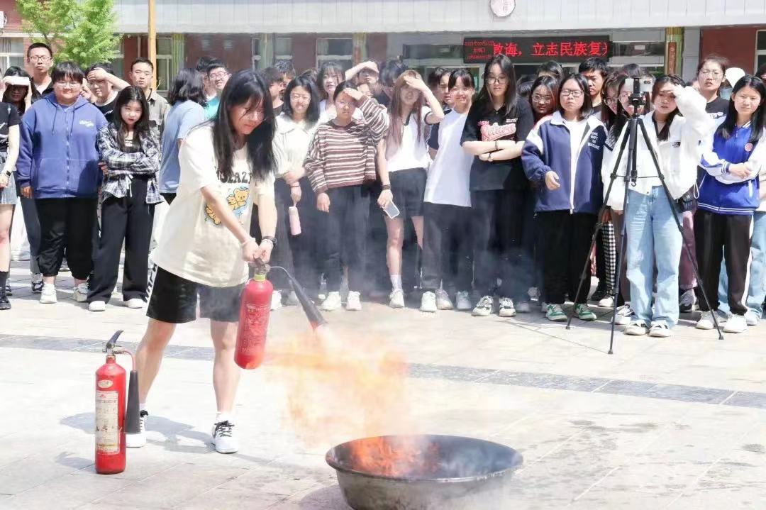 在第二个示范教学环节中,崔老师从“进行消防演练的重要性”、“消防演练时的注意事项”、“灭火器的正确使用”等方面为同学们详细讲解了消防安全知识,并现场演示了灭火器的使用方式,同学们认真观摩学习,并动手操作灭火器进行了灭火练习。