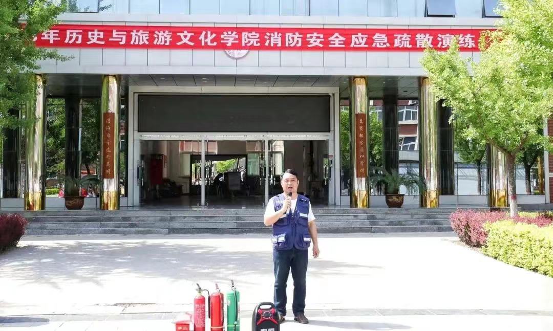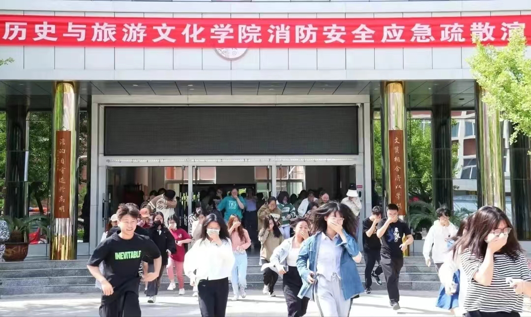 活动分为两个环节,在应急疏散演练环节中,随着火灾警报声响起,聚集在教学楼的同学们以班级为单位,按就近原则沿着楼梯通道进行紧急疏散,大家用手或袖口捂住口鼻,弯腰前行,按照指定路线撤离,用时1分20秒顺利抵达空旷安全区域。崔哲老师对演练中存在的不足之处进行了指正,并向同学们讲解和强调了消防演练时的注意事项及逃生技巧。在随后进行的第二次疏散演练中,同学们吸取第一次演练的经验教训,在楼梯口、转角拐弯处适当放缓了撤退速度,并分散从不同的安全出口离开教学楼,大家服从指挥,有条不紊地疏散,在49秒的时间内,安全有序、镇定快速地到达集合地点。