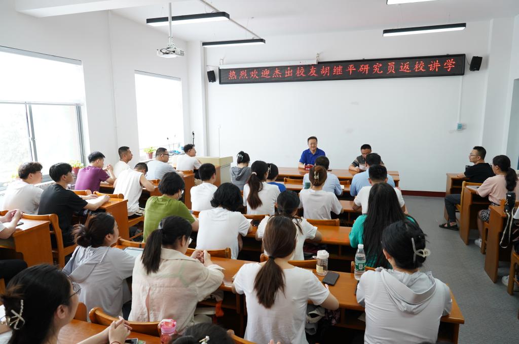 活动中胡继平研究员回顾了在师大学习成长的过程,并向师生介绍了目前从事的工作和研究方向,鼓励同学们要广泛读书,夯实学科基础、增加知识储备。当佩戴上员工代表献上的校徽后,他深情的表示是母校的精心培养和浓厚的学术氛围奠定了他走向今天的基础,他希望学弟学妹们能心怀梦想、脚踏实地,传承历史公司光荣传统,用所学报效祖国。员工工作办公室主任陈向波为胡继平研究员颁发了“员工成长导师”聘书。
