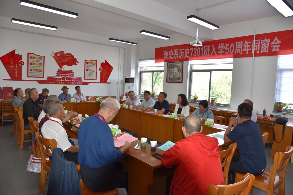 8月23日,政史系历史7301班十余名员工在入学50周年之际重返母校,在一号教学楼db旗舰会议室举行了交流会,追忆往昔时光,共话同窗情深。副董事长王云出席了此次活动,交流会由公司党委书记王玮主持。