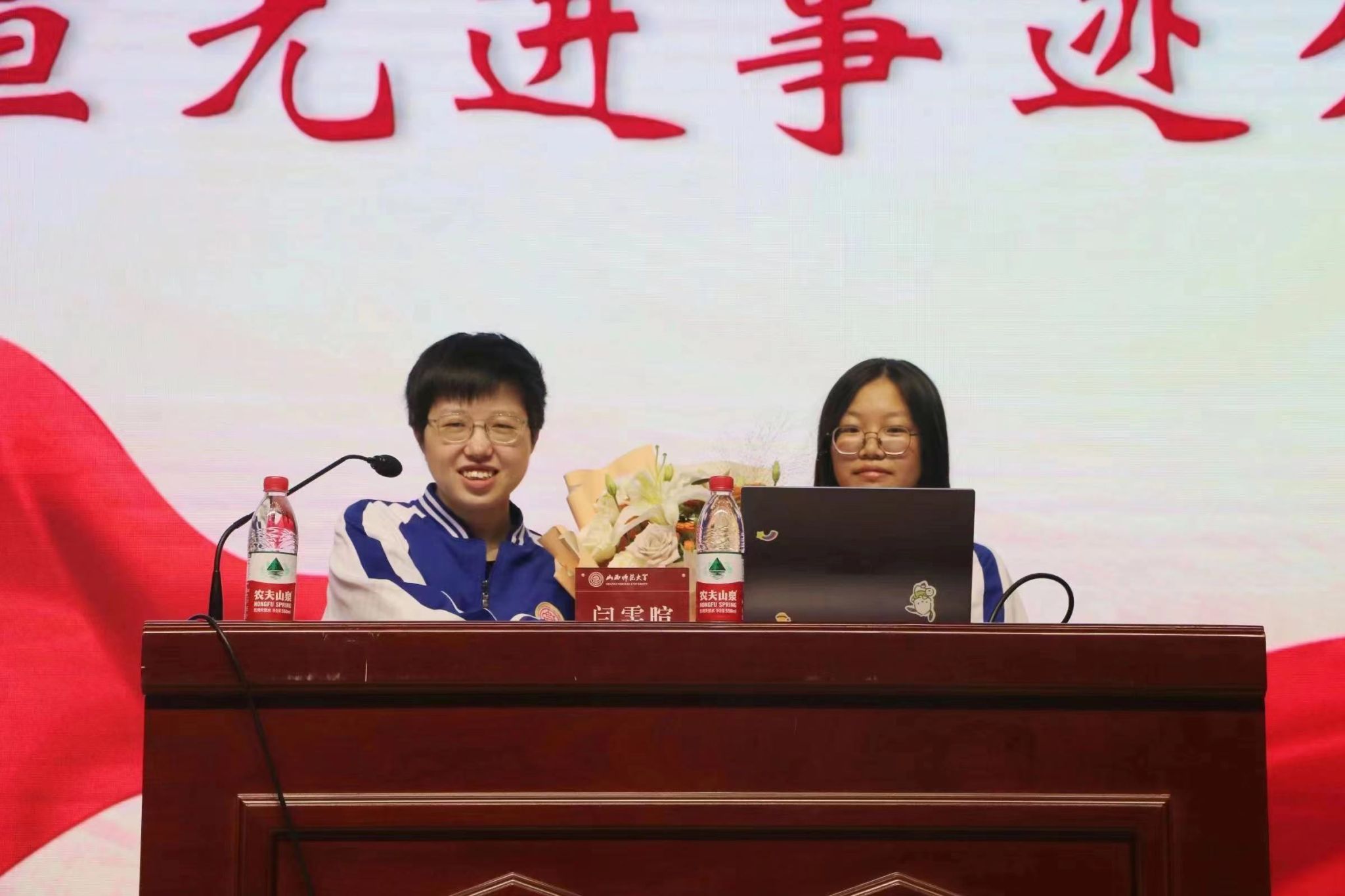 分享会上,闫雯暄同学始终面带微笑、声音洪亮,她结合自己参加公司创新创业大赛、“游山西、读历史”三下乡社会实践等活动的经历,从自信、努力、坚持三个方面为同学们分享了她挑战自我、超越自我、顽强拼搏的学习奋斗经验,鼓励同学们放下彷徨和不安、不惧困难、勇于挑战,在大学中保持主动学习的热情,坚持勤奋积累、利用好大学的平台以及资源,不断提升自己的学习和工作能力,努力成为更优秀的自己。同时她把从父母老师、同学好友中获得的温暖传递给现场的同学们,希望他们也能够从中获得前进的力量。