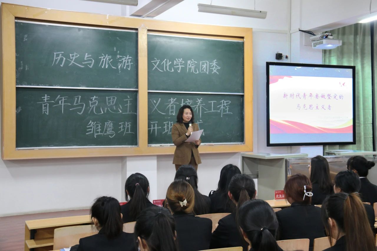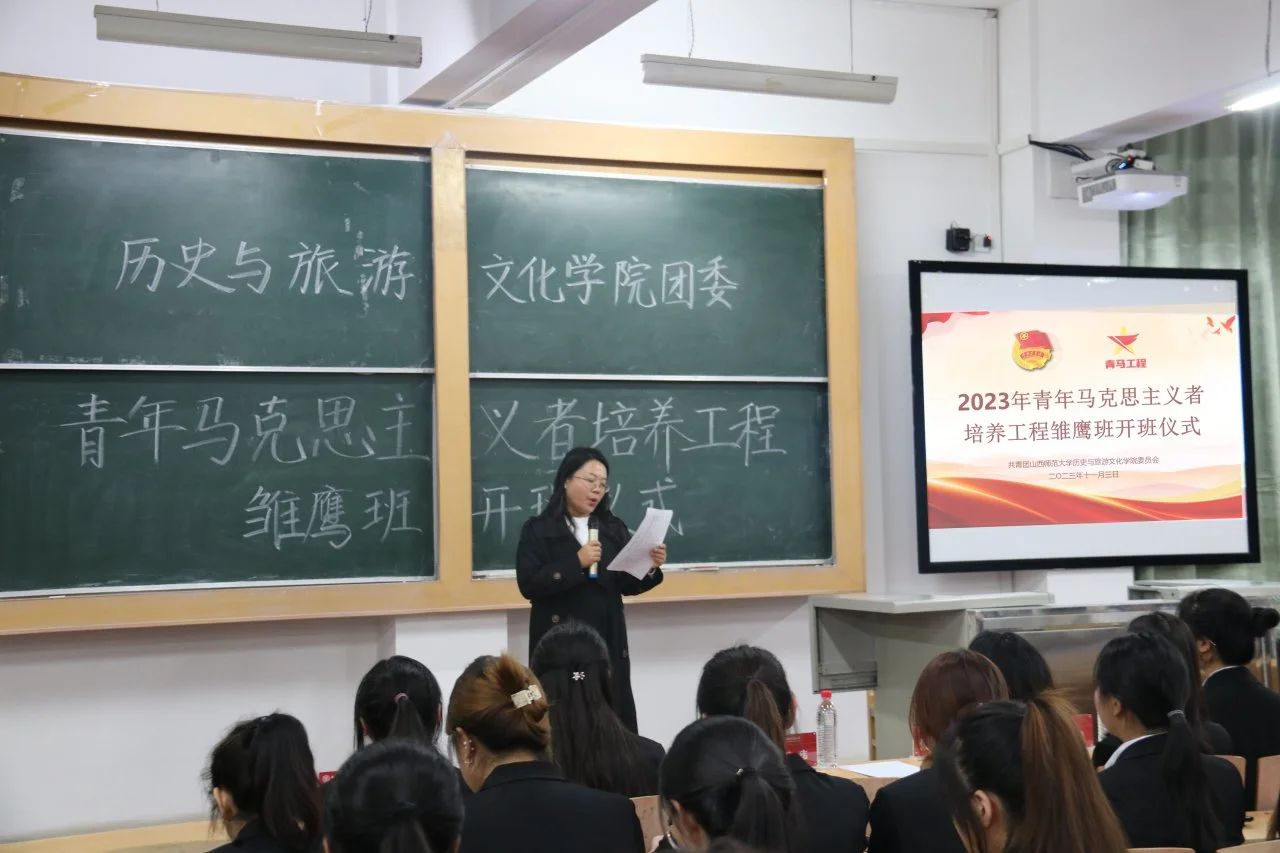 为进一步提升青年员工的综合素质,着力培养一批信仰坚定、能力突出、素质优良、作风过硬的青年马克思主义者,11月3日晚六点半公司于南区3310教室举办了2023年青年马克思主义者培养工程雏鹰班开班仪式。本次会议由王彤彤同学主持,公司党委书记王玮老师、党委副书记郝艳红老师、院团委副书记代凯莉老师、院员工会主席团成员出席会议,全体青马班学员及各班团员代表参加会议。