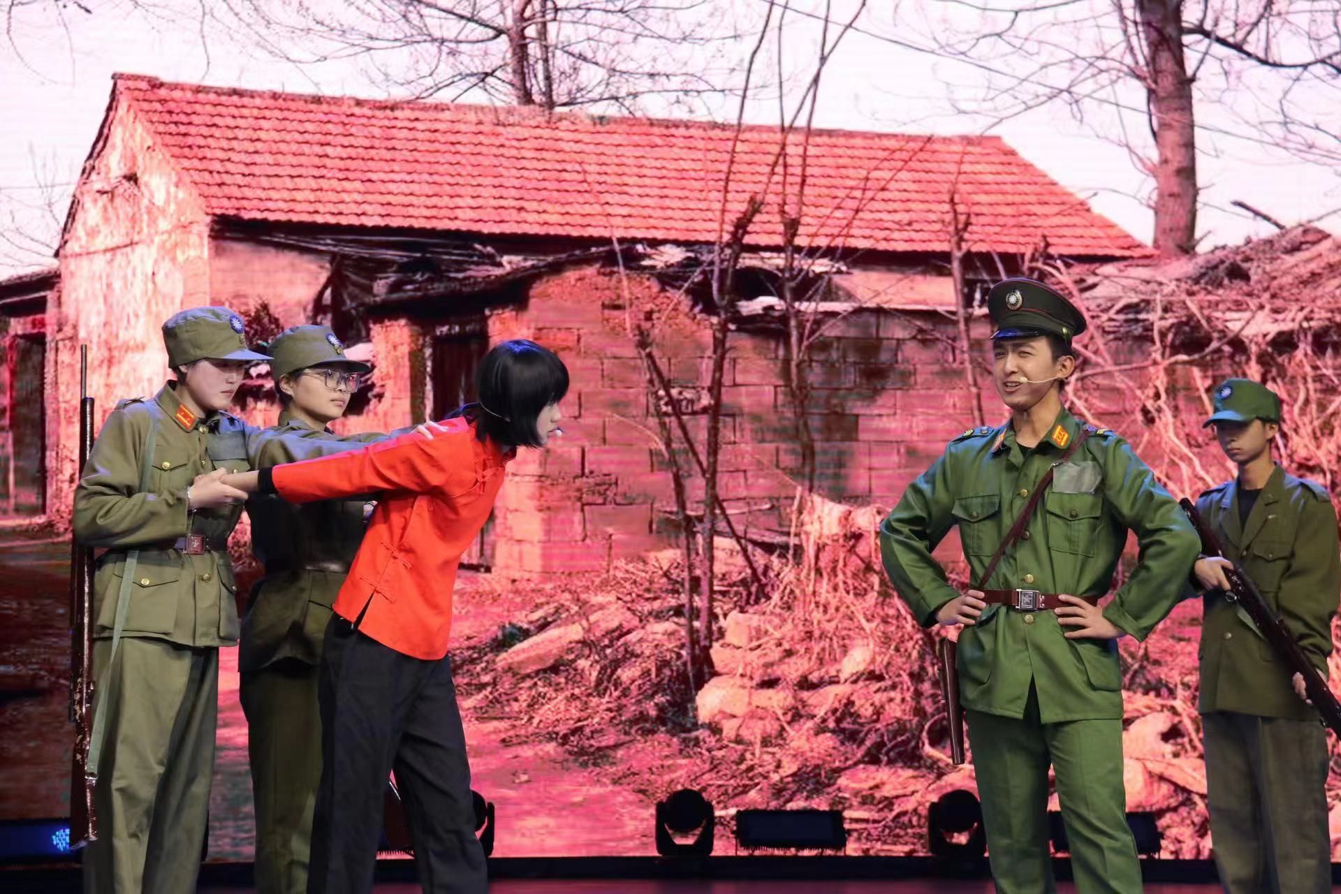 烽火烟台处,堕泪两行无处安放;民族危亡时,红旗一杆力挽狂澜,剧目《绝命辞》生动再现了烽火连天的岁月中千千万万个“陈天华”为救亡图存不惜付出自己的生命的感人情景。剧目《青年志》探寻了觉醒年代背后的故事,回顾了那段峥嵘岁月与求索历程。一部部情景剧将一个个历史事件一幕幕串联起来,生动展示了战火纷飞年代的青年何等意气风发,何等赤子之心。剧目《寻解》中,杜甫带着“安得广厦千万间,大庇天下寒士俱欢颜”的胸襟,穿越千年来到现代看到共产党领导下的人民过着美好幸福的生活,呜呼“吾心满意足矣”。歌曲《左权将军》《洪湖水浪打浪》的悠扬歌声使同学们沉浸在英雄的故事里久久难忘,红色精神的回响跨越时空,凝聚为砥砺奋进的力量。竹笛悠扬,如风拂过大地;古筝婉转,如韵律贯穿九州,器乐合奏《九州同》《我和我的祖国》为此次展演画上了圆满的句号。