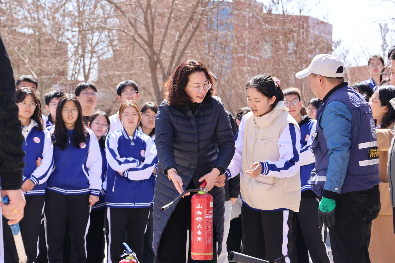 演练中,随着警报声响起,教学楼中的同学们以班级为单位在老师的指挥下,捂住口鼻,弯腰前行,按照指定路线快速撤离至安全场地。第一次演练结束后,校保卫部安全科崔哲老师进行了点评,对演练中存在的不足之处和注意事项进行了讲解和强调。随后同学们进行了第二次演练,大家吸取第一次演练的经验教训,在楼梯口、转角拐弯处适当放缓奔跑速度以避免出现拥挤踩踏,并从不同安全出口分散离开教学楼以避免人员密集拥堵的情况出现。到达空旷安全区域后,各班负责人迅速集中本班人员并清点人数进行汇报,圆满完成第二次演练。疏散演练结束后,崔老师从“进行消防演练的重要性”“消防知识四会四懂“、“不同灭火装置的使用方法”等方面为师生们进行了详细的讲解和示范,同学们也拿起灭火器在专业人士指导下进行了实操练习。