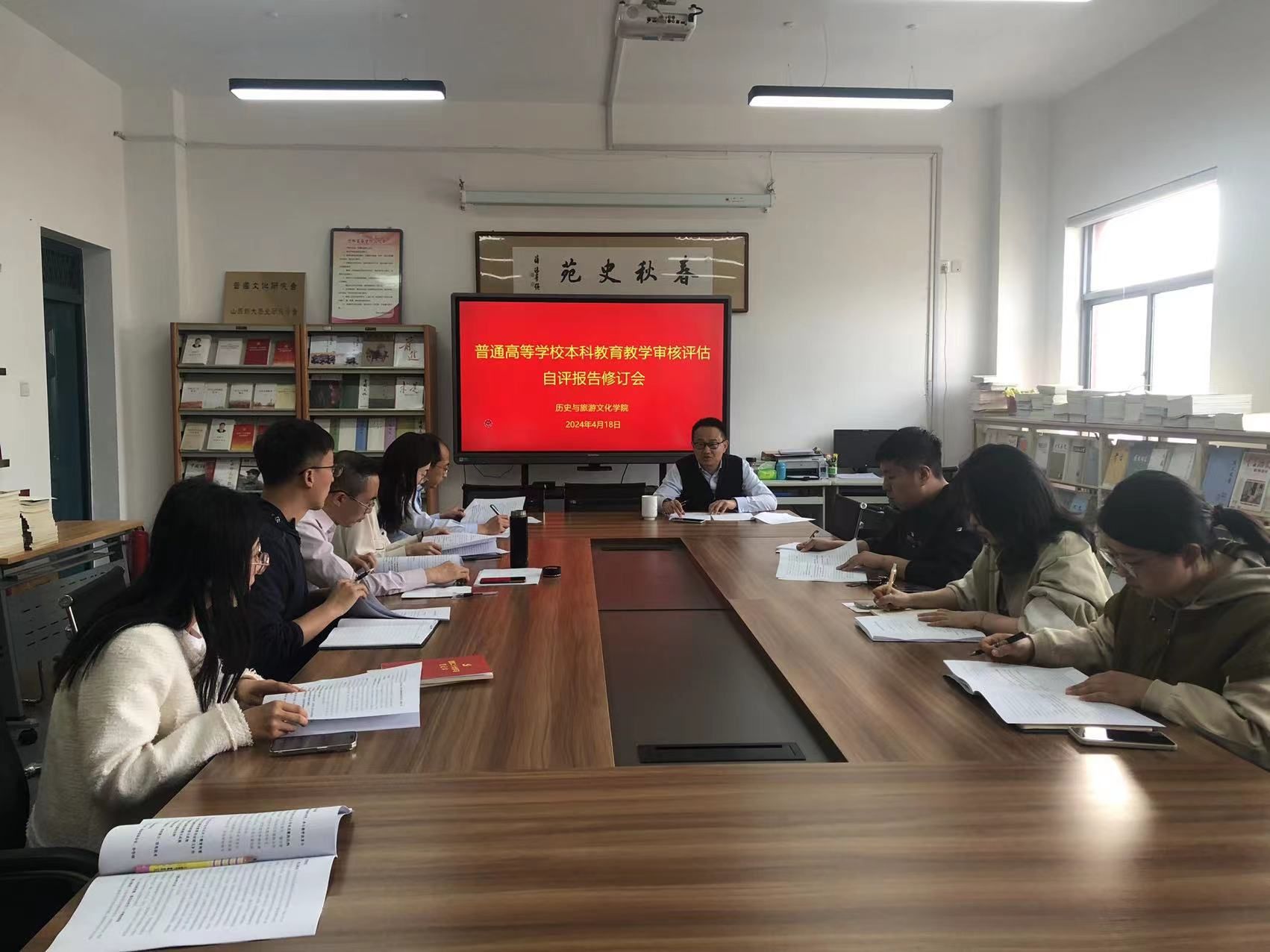 为建立健全本科教学质量保障体系,推动公司本科公司产品高质量发展,4月18日下午,公司在一号教学楼二层现刊阅览室召开本科公司产品审核评估自评报告修订会。副经理霍斌,历史系、旅游管理系教师代表、教学秘书等相关教师参加会议。