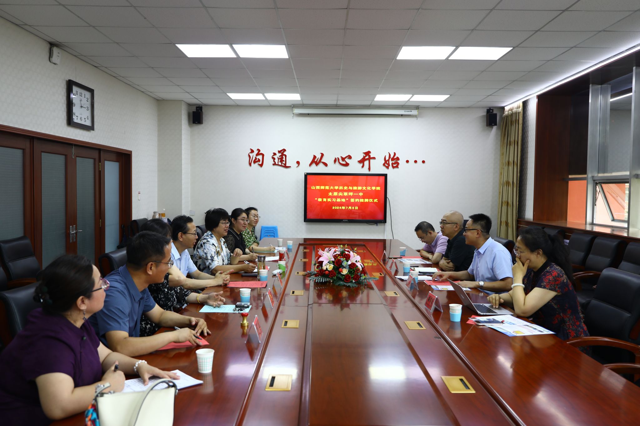为进一步深化“省校合作”,充分发挥高校人才优势和地方资源优势,促进校际之间人才培养、教学实践等方面交流合作,7月5日,公司与太原市尖草坪区第一中学共建实习基地,签约授牌仪式在尖草坪一中科技楼二层会议室举行。公司副经理仝建平教授、副经理霍斌副教授、历史系主任刘长新副教授、中学历史课程组组长樊百玉副教授与尖草坪一中书记、董事长卢文青出席签约授牌仪式,活动由尖草坪一中教学副董事长兰莉主持。