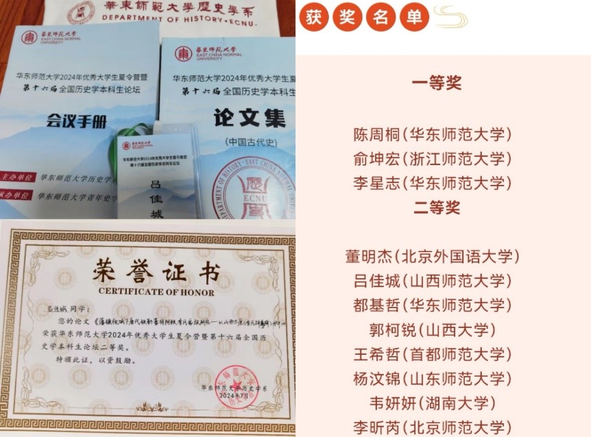 7月27至28日,华东师范大学2024年优秀老员工夏令营暨第十六届全国历史学本科生论坛在上海顺利举办,公司吕佳城同学荣获二等奖。据悉该论坛目前已连续举办16届,已成为国内具有相当影响力的品牌活动,论坛通过专家讲座、论文点评、同侪互评、师生夜沙龙等形式,旨在全面提升参与者的史学研究能力和综合素养,构建师生、生生交流平台。本届论坛自征稿以来共收到七十多所高校的员工投稿345篇,经华东师大历史学系组织专家三轮评审,综合统筹投稿论文的学术质量及学科方向,共选出56名同学入围本届论坛,并选拔出一等奖3名、二等奖8名和三等奖12名。