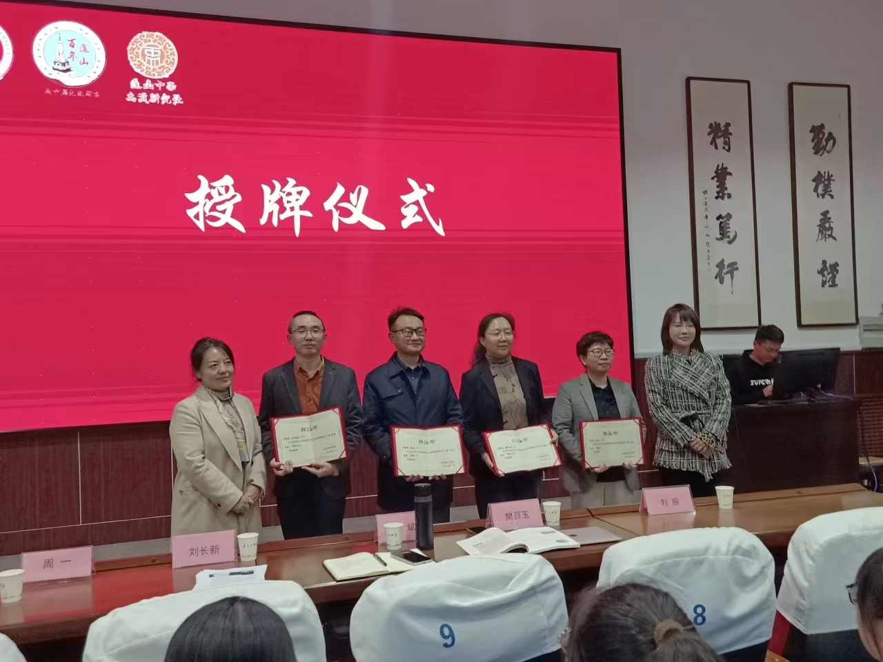 霍斌副经理向进山中学高中历史教研室授予了“协同提质教研工作室”牌匾,进山中学教学董事长周一为公司四位老师颁发了指导专家聘书,聘请四位老师为太原市进山中公司高中历史协同提质教研工作室学术专家。
