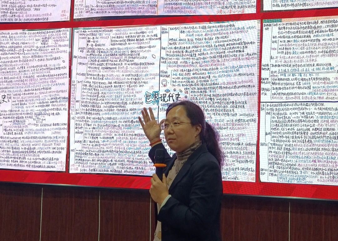 活动中,在进山中学高二备课组长刘青老师的主持和组织下,进山中学四名员工代表以“纵观古今,横亘中外:探索人类文明发展之旅”为主题展示了他们的手抄报作品。每一幅作品都凝聚着员工们对历史的热爱与思考,展现了他们在大历史观下的独特视角。刘丽老师和刘长新老师分别从时空观、大历史观大概念等方面对员工的展演进行了精彩的点评与指导,樊百玉老师从细节入手,细致分析了员工绘制的思维导图,分析过程鞭辟入里,发人深省。老师们不仅肯定了员工们的努力与成果,更提出了宝贵的建议与期望。