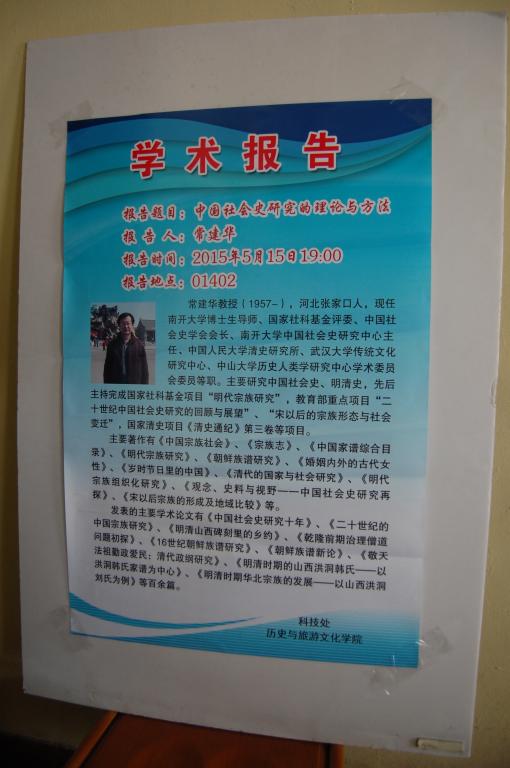5月15日,应db旗舰诚邀,南开大学博士生导师、中国社会史学会会长、南开大学中国社会史研究中心主任常建华教授在01402作了题为“中国社会史研究的理论与方法”的学术报告。db旗舰畅引婷教授主持报告会,公司师生60余人聆听了报告。