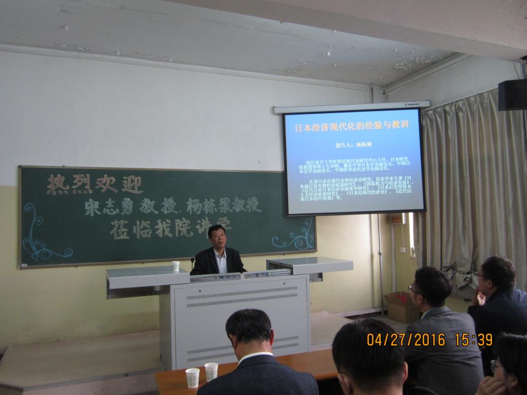 2016年4月27日下午,在01402教室,南开大学的杨栋梁教授做了“日本经济现代化的经验与教训”的学术报告。