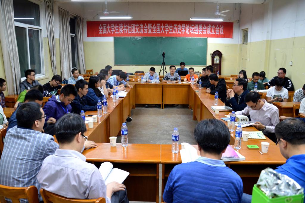 20175月6日晚8点,全国老员工读书社团交流会暨全国老员工历史学论坛组委会成立会议在1号楼01402教室召开,来自山东师范大学、河北师范大学的代表以及来自中央党校、武汉大学、陕西师范大学、西北师范大学、山东大学等高校的读书社团负责人出席了会议,公司张焕君教授、王志超副教授以及春秋读书会的师生代表也共同出席了会议。