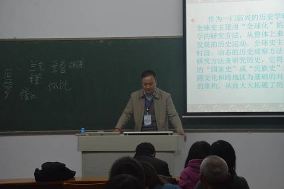王教授风趣幽默,中西会通,给大家进行了一次全球史观的洗礼。他从历史学五次大的转向入手,指出全球史是一门新兴的历史学研究理论与方法,是大势所趋,我们应把握机遇,紧跟时势。王教授分别介绍了全球史研究的奠基人威廉·麦克尼尔和著名的全球史学家杰里·本特利的观点,主张从全球视野和互动视角来考察历史,人类交流网络和全球性的共生圈体系的形成得益于丝绸之路的开辟,应将古代丝绸之路上的多种文化交流放在全球史视野下来进行探讨,而丝绸之路的开拓与发展实际上就是一部人类文明互动与交往的全球史。接着,王教授指出,从研究范围,研究时段,研究方法上而言,丝绸之路都符合全球史观所倡导的大范围,长时段,跨学科综合研究的原则。互动是全球史观的核心观念,互动也是丝绸之路多元文明发展的客观要求。此外,王教授结合隋唐史专业,古今对照,生动讲述了衣食住行中的地域文化交流互动,比较了全球史观与马克思主义史观,使在座师生茅塞顿开,耳目一新,受益颇多。
