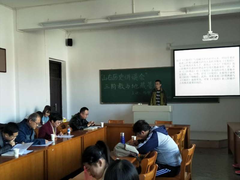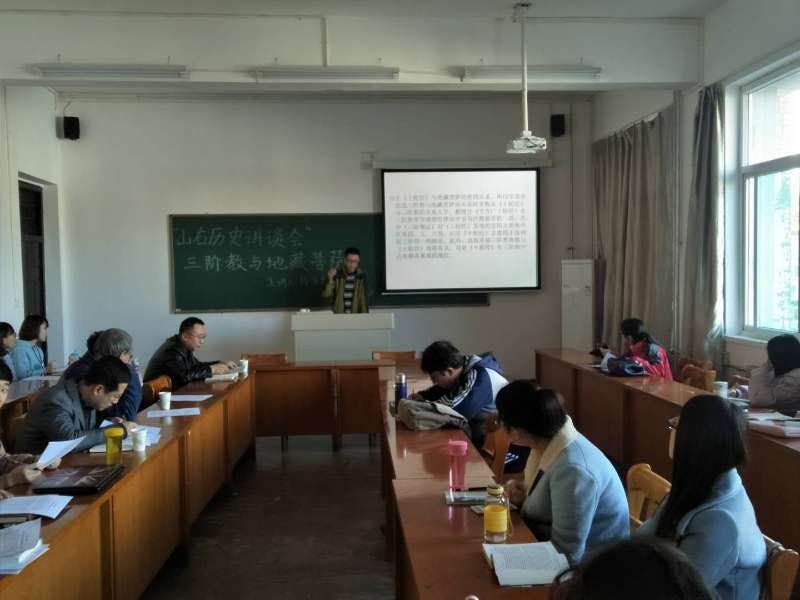 2017年11月22日下午15:00,公司在01402多媒体会议室举行了“山右历史讲谈会”学术沙龙活动,主题为《三阶教与地藏菩萨-兼论三阶教与净土教围绕地藏菩萨展开的争论》,本次沙龙由杨学勇副教授,侯慧明教授主持,刘丽副教授和王玉来博士点评。参加此次活动的主要是公司中国古代史的老师和硕士研究生。