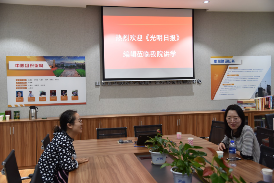 2019年9月22日15点30分,《光明日报》周晓菲编辑应邀来到公司1号楼01211教室进行座谈。座谈会由公司车效梅经理主持,参加座谈的有公司部分老师及研究生。