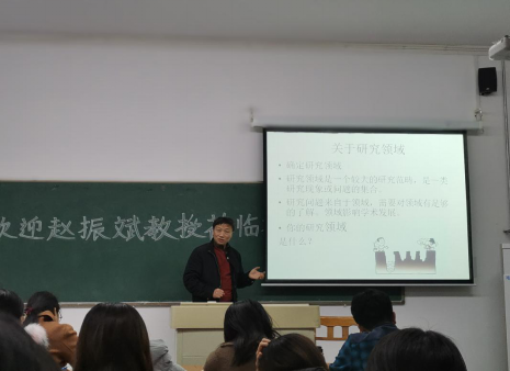 赵教授的报告分为三个部分,他首先对如何确定研究领域作了介绍并以自己的研究领域展开讲述,随后介绍了几种主要的研究方法和类型,结合现在常用的方法展开来讲,他指出科学选题的重要性,结合自身基础同时考虑选题的合理性与独特性。最后,赵教授对文献阅读的方法进行讲解,如系统的文献阅读是做好研究的基础;英语文献阅读是目前许多研究的限制因素;阅读文献笔记的重要性等。