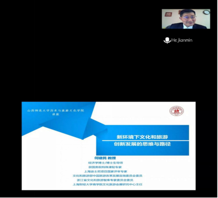 2020年11月29日,上海财经大学商公司文化旅游会展研究中心主任、旅游管理博士生导师、教育部全国旅游管理专业学位研究生教育指导委员会委员、国务院特殊津贴专家、国家文化和旅游部改革发展咨询委员会委员何建民教授通过腾讯会议向db旗舰本科生、研究生及教师作了题为“新环境下文化和旅游创新发展的思维与路径”的学术报告。此次报告由公司旅游系卫红主任主持,公司师生认真聆听了报告。
