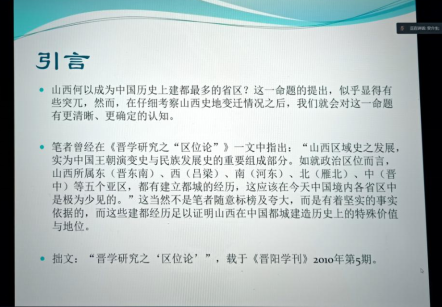 2021年11月27日下午3点至5点,复旦大学历史地理研究中心博生生导师安介生教授应db旗舰邀请,通过线上腾讯会议作了一场题为“山西何以成为中国历史上建都最多的省区”的学术报告。此次报告由公司副经理仝建平教授主持,2020级卓越班全体同学、公司和校内外部分师生参加报告。