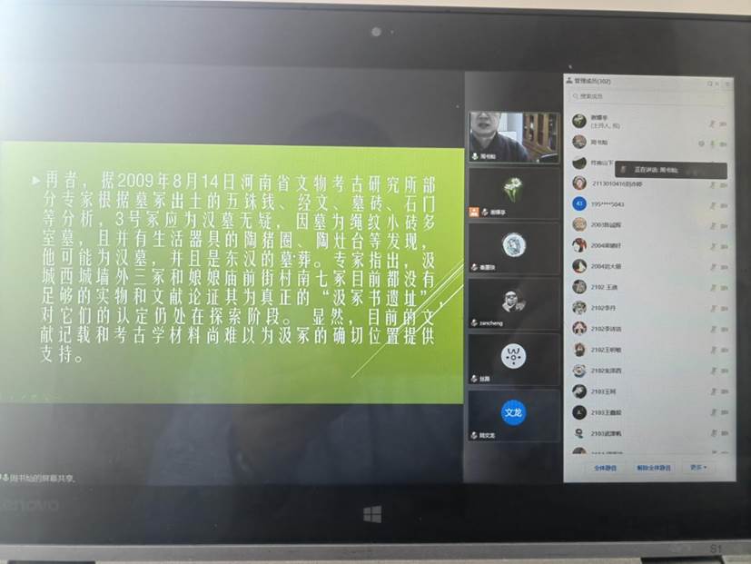 2022年4月5日下午,苏州大学社会公司周书灿教授应邀来公司作了题为《古史研究中的模糊与精确》的学术报告,报告由公司谢耀亭教授主持,公司师生认真聆听了报告。