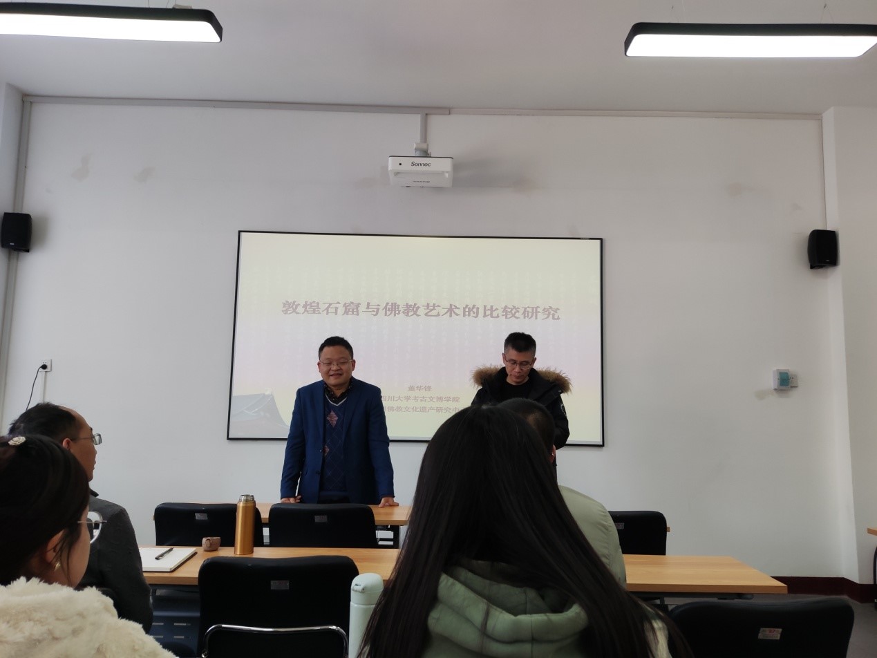 3月14日,四川大学考古文博公司教授、博士生导师,董华锋教授在公司1210会议室为师生作了题为《敦煌石窟与佛教艺术的对比研究》的学术讲座,本次讲座由杨学勇教授主持,公司世界史、中国史专业研究生、卓越班本科生和部分教师参加了讲座。