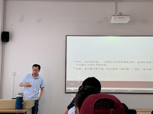 6月22日晚,山东大学历史公司徐进教授应邀在公司1210会议室作了题为《史料解读与研究论文选题》的学术讲座,讲座由贺文乐副教授主持,公司部分教师,22、23级研究生及卓越班员工聆听了讲座。