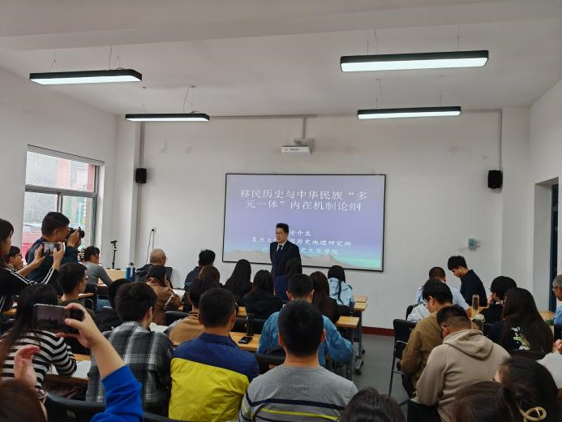 安教授以当代兴起的“寻根热”文化为引言,从移民历史的视角探讨了中华民族的形成。他深入解析了“移民”“中国”与“中华民族”等概念,详细论述了中国移民史及民族融合与发展的内在机制。安教授指出,民族走向和解与国家走向统一是历史发展的趋势,尽管中国历史上经历了复杂的统一与分裂,但是整体的发展趋势是不可逆转的。中华民族“多元一体”格局的形成并非是自然而然形成的,有其族群通婚、用人政策、大一统观等综合因素的影响,体现了中华民族各族群的智慧。安教授充满家国情怀的讲授和作为教育者所体现出来的使命担当使同学们深受感染。