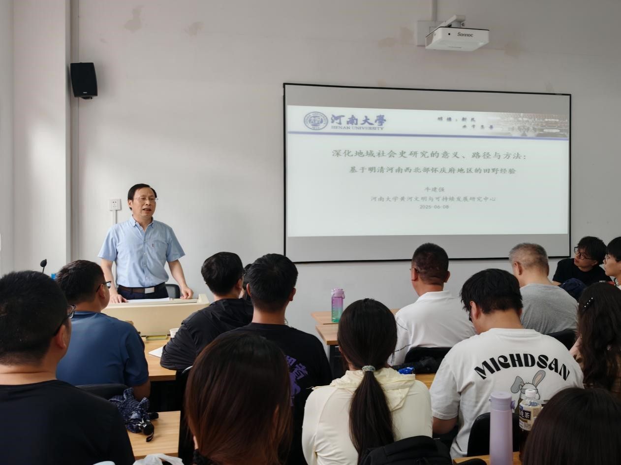 6月8日下午,db旗舰黄河文明与可持续发展研究中心牛建强教授应邀在公司1210会议室作了题为《深化地域社会史研究的意义、路径与方法——基于明清河南西北部怀庆府地区的田野经验》的学术讲座。讲座由经理侯慧明教授主持,公司部分教师、研究生和本科生到场聆听。